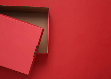 Opened Red cardboard box on a red background. Mock up