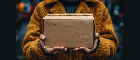 Top view of hand holds the package or parcel box