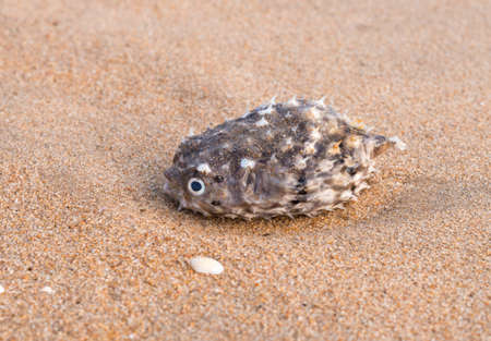 Fish hedgehog. Yellow-spotted cyclicht - grows up to 34 cm, feeds on crustaceans and molluscs. In case of danger, it takes the form of a ball, bristling spines.