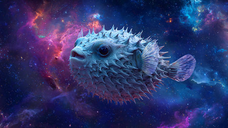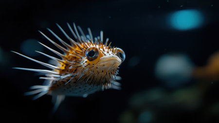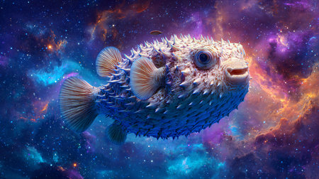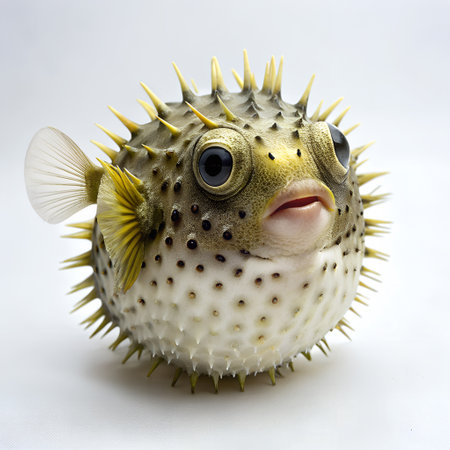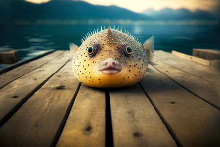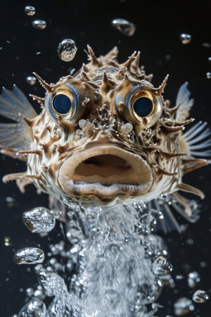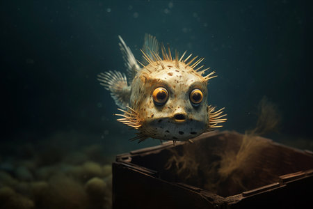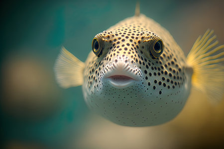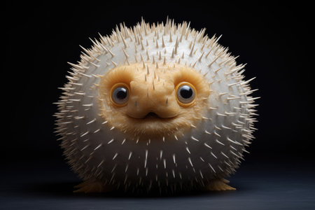 Capture the innocence and charm of this endearing creature with its captivating big eyes, An inflated texture of a blowfish, AI Generated