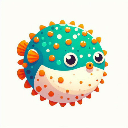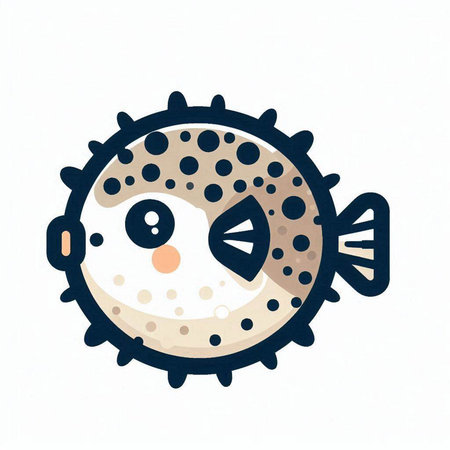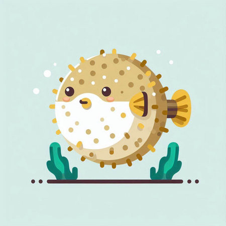 Puffer fish vector illustration. Cute cartoon sea animal character.