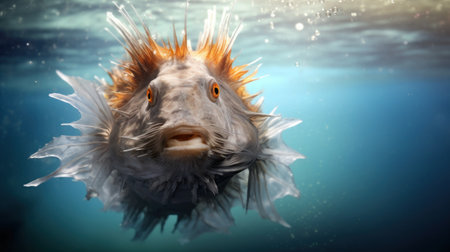 Washing up in a plastic bag was puffer fish. Ocean plastic contamination is a serious environmental issue. Generative AI