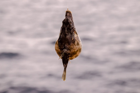 One Sea Fish Hooked over the Blue Atlantic Ocean