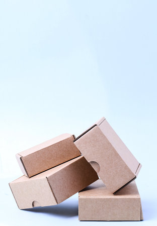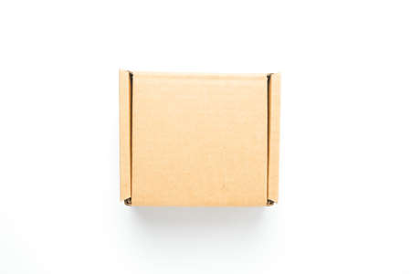 A flatlay picture of empty corrugated single layer box used to packing small item on isolated white background.
