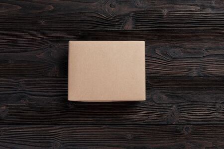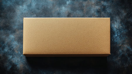 Unadorned brown box placed on a dark textured background with subtle lighting effects.