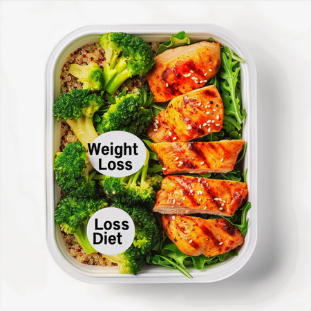 Grilled chicken with broccoli and quinoa in a meal prep container