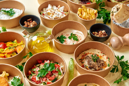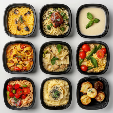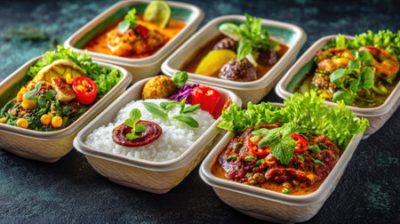 A Vibrant Display of Gourmet Dishes Featuring Fresh Ingredients in Eco-Friendly Containers Perfect for Any Culinary Occasion