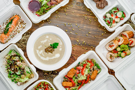 Healthy food and diet concept, restaurant dish delivery.