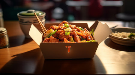 Restaurant asian food delivery in take away boxes