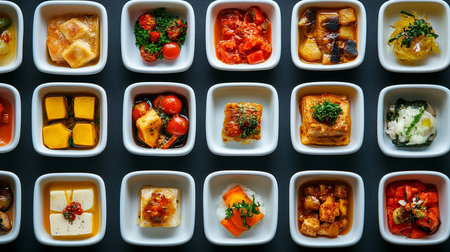 A Vibrant Display of Diverse Dishes in Small Bowls