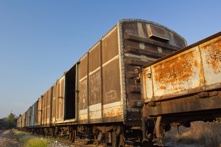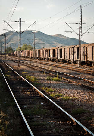 Freight train in the background of sunset - dawn is waiting for departure to its destination