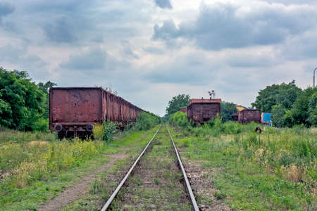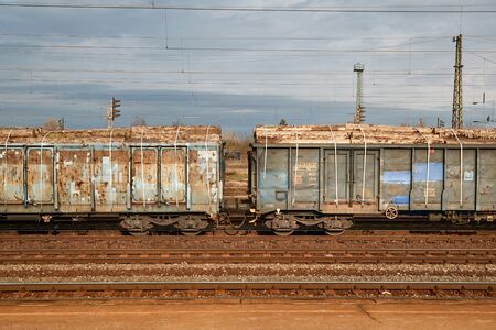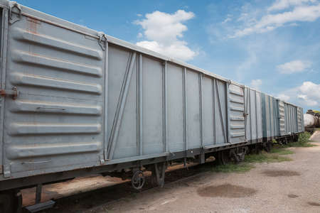 Freight cars of the train. Railway of Moldova. Background with copy space for text or lettering. Illustrative editorial. September 15, 2021, Balti Moldova.