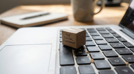 A drop shipping store box clock logistic concept. drop shipping store box on laptop near clock and notebook shows logistic concept growth