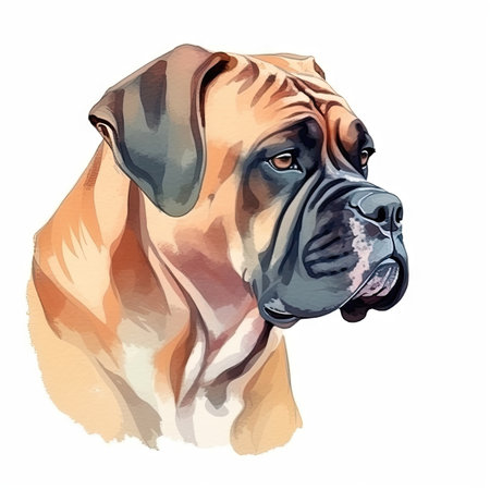 Minimalist Bullmastiff Watercolor Painting on Soft Pastel Background for Invitations and Posters. Generative AI