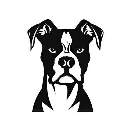 boxer dog illustration, crafted in svg style, stands out against a pristine white background, showcasing clean lines and soft curves that blend harmoniously, creating a stunning black and white visual representation of this beloved breed's energetic and playful personality. ai generated