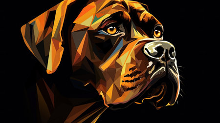 Ornate portrait of a Boxer dog. Colorful vector illustration based on a mix of WPAP and pop art styles. Scalable design for wall art, posters, banners, t-shirts, mugs, cases, etc.
