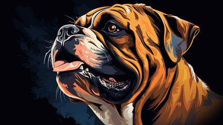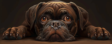 a box dog portrait cartoon vector illustration of a boxer, showcasing stylized realism. the artwork features a light maroon and amber color scheme, with elements of pop art graphic design. the illustration embodies the essence of bad painting and the art of burma, while also displaying bold graphic design elements. ai generated