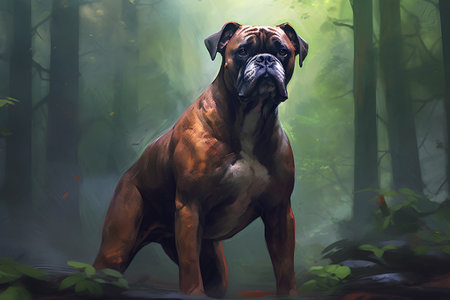 Dogue de Bordeaux dog in the forest. Digital painting.