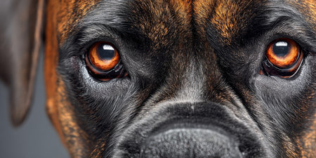 Captivating Boxer Dog Portrait with Expressive Eyes and Charming Face Against a Gray Background