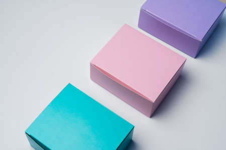 online delivery parcel boxes on grey background, concept of competitions and customer choices