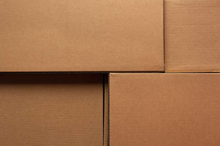 Lots of cardboard boxes pattern on brown background. Template Copy space for text