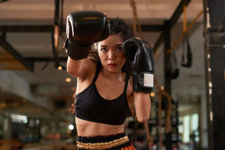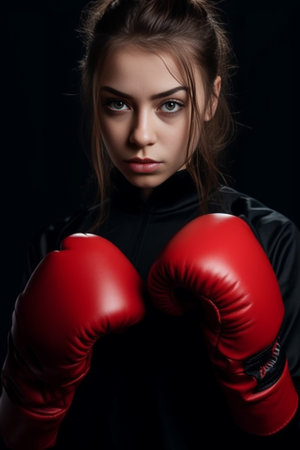 Determined female boxer ready for action