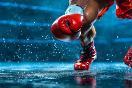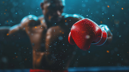Close up of boxer s glove impacting opponent, showcasing power and precision in boxing sport
