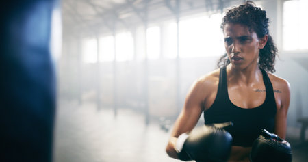 Dedicated boxer showcases remarkable focus and incredible strength throughout an energizing training session, truly embodying the spirit and essence of combat sports