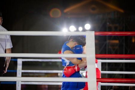 Boxing fight in the ring at competitions sport