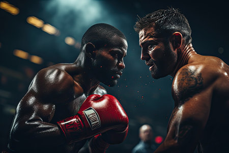 Intense boxing fight between two boxers, generative AI