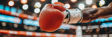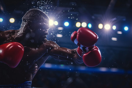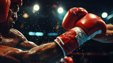 Close up of boxer s glove impacting opponent, showcasing power and precision in boxing sport