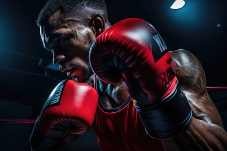 Focused athlete embodies determination in boxing stance ready to compete. Concept Sports Photography, Boxing, Determination, Athlete, Competition