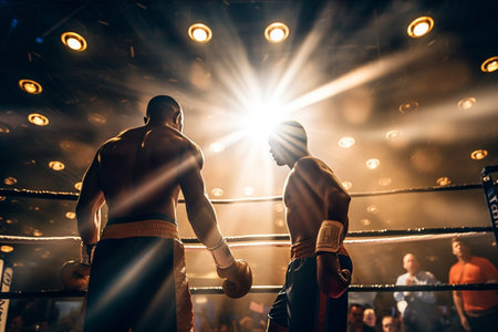 illustration of boxers fight as light shining around them with Generative AI