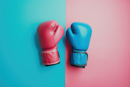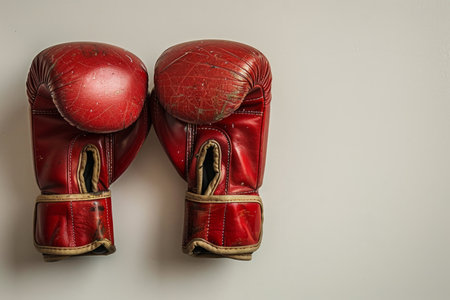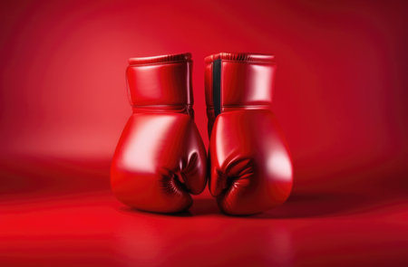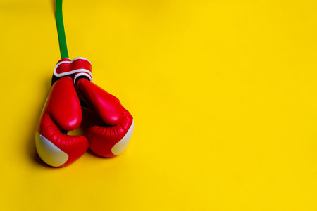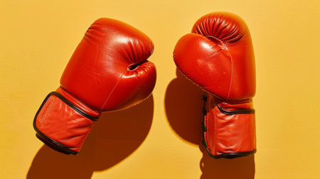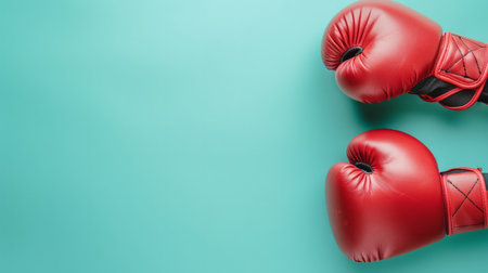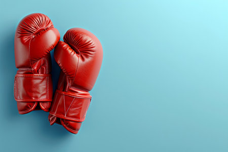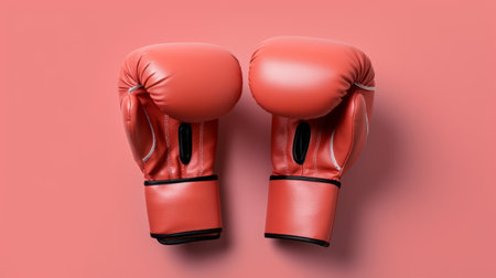 Red boxing gloves on bright solid color background with copy space, AI Generated