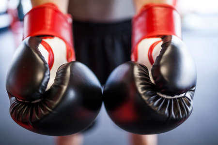 Close-up of red boxing gloves