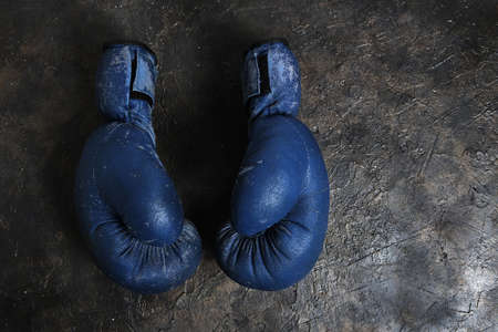 Old blue Boxing gloves on a concrete background