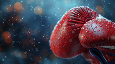 Closeup of a vibrant red boxing glove, symbolizing strength and precision in sports training and competition.