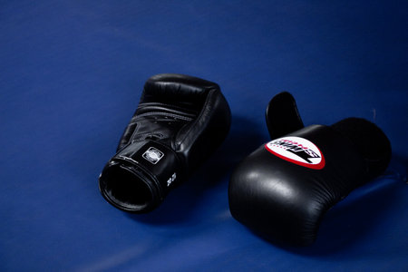 Khabarovsk, Russia - Jul 29, 2017: Boxing gloves on the Mat