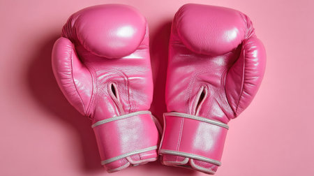 Vibrant pink boxing gloves rest on a soft pink background, perfect for promoting fitness, training, or sports-related content. Ideal for stylish workouts.