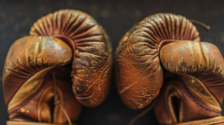 Old brown Boxing gloves hanging on the wall