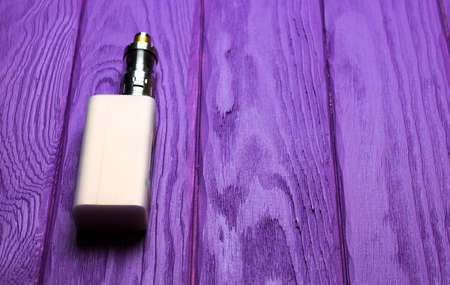 e-cig mod or electronic cigarette for vaping on a wooden table