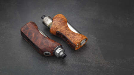 vaping devices or electronic cigarette on a wooden background