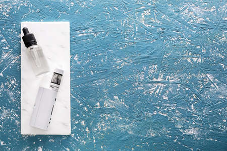 Vape mod with oil on color background
