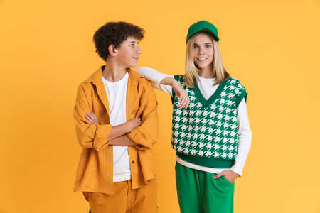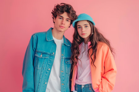 Portrait of a young couple happy millennial casual and modern dress. People of urban style