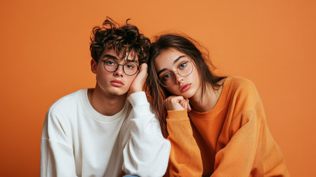 Casual Portrait of Young Man and Woman in White Shirts in Studio Setting