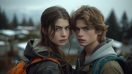 Teen Siblings Outdoors in Summer Light Casual Portrait of Youthful Connection.