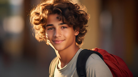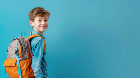 portrait of schoolboy with backpack is ready to go to school for education. smart child learning concept. generative AI