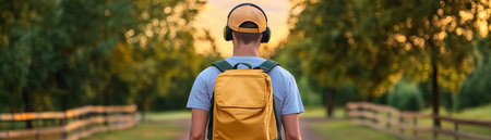 A man strolls through the park, his headphones blocking out the world, replaced by peaceful melodies Nature surrounds him, offering serenity and freedom He finds joy in the simple act of walking, his mind relaxed, his spirit uplifted by the music and the fresh air AI Generative