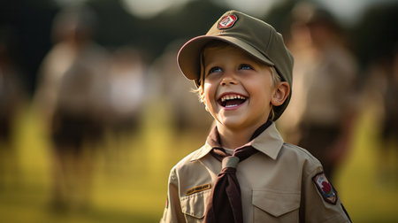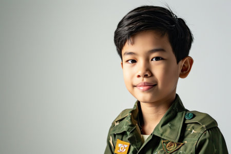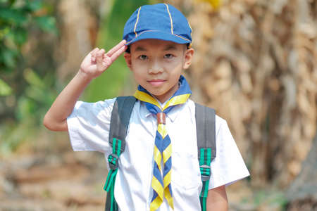 boy scout, a Thai Asian boy scout in uniform with cheerful smile stand at salute
