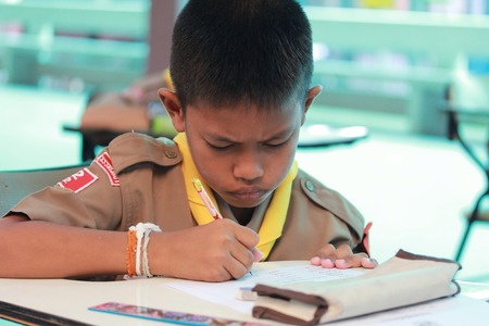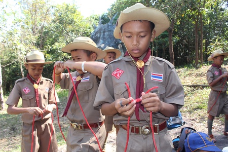 Chonburi, Thailand - April 4: unidentified Thai Boy Scout and in 20th THAILAND NATIONAL SCOUT JAMBOREE as part of the study on April 4,2015 in Vajiravudh Scout Camp, Chonburi, Thailand.